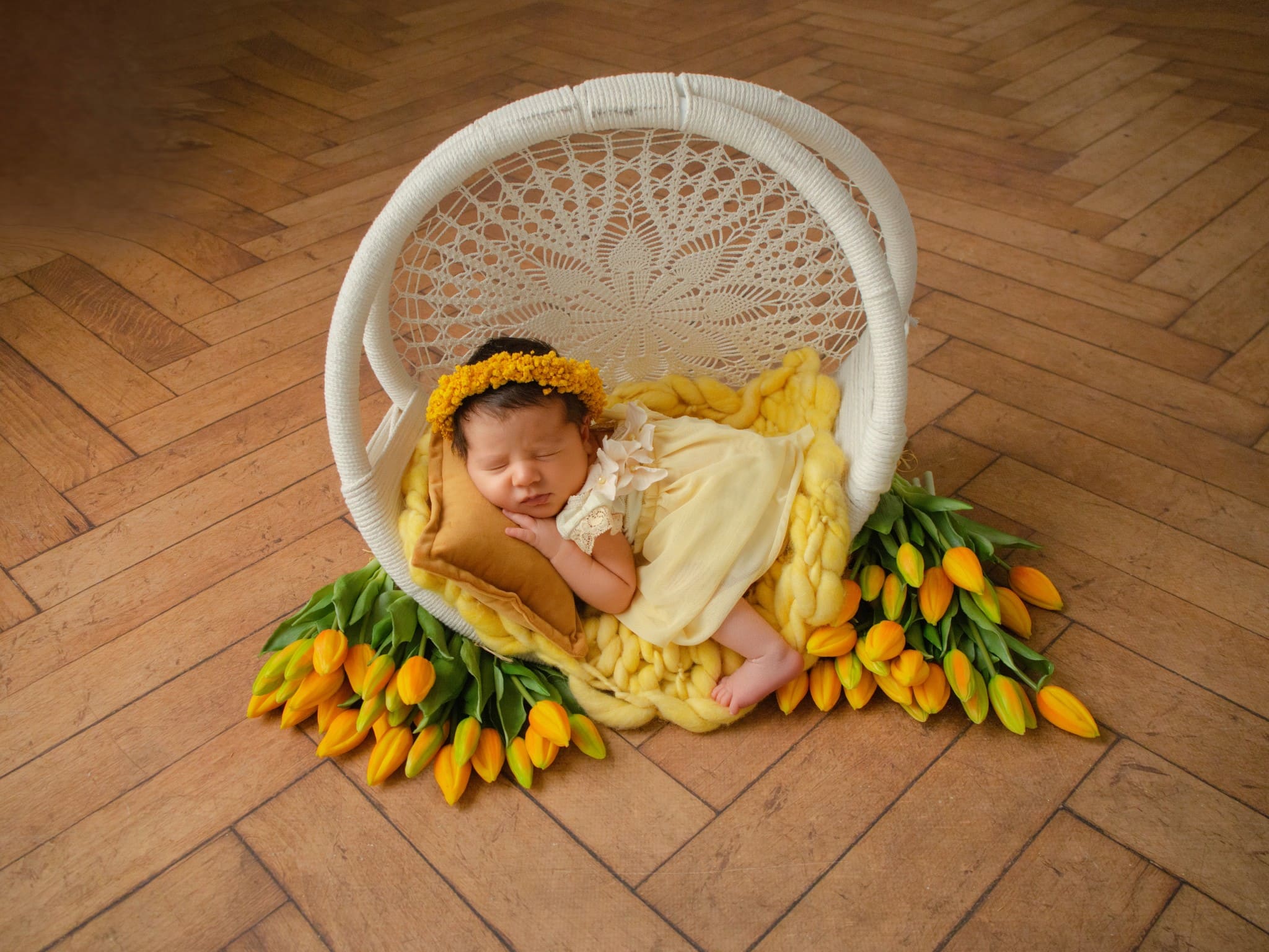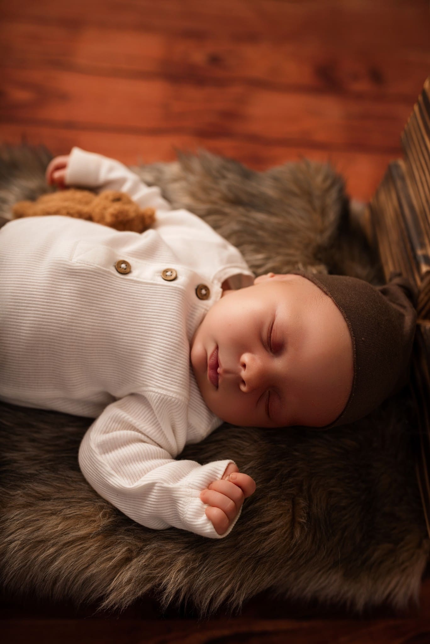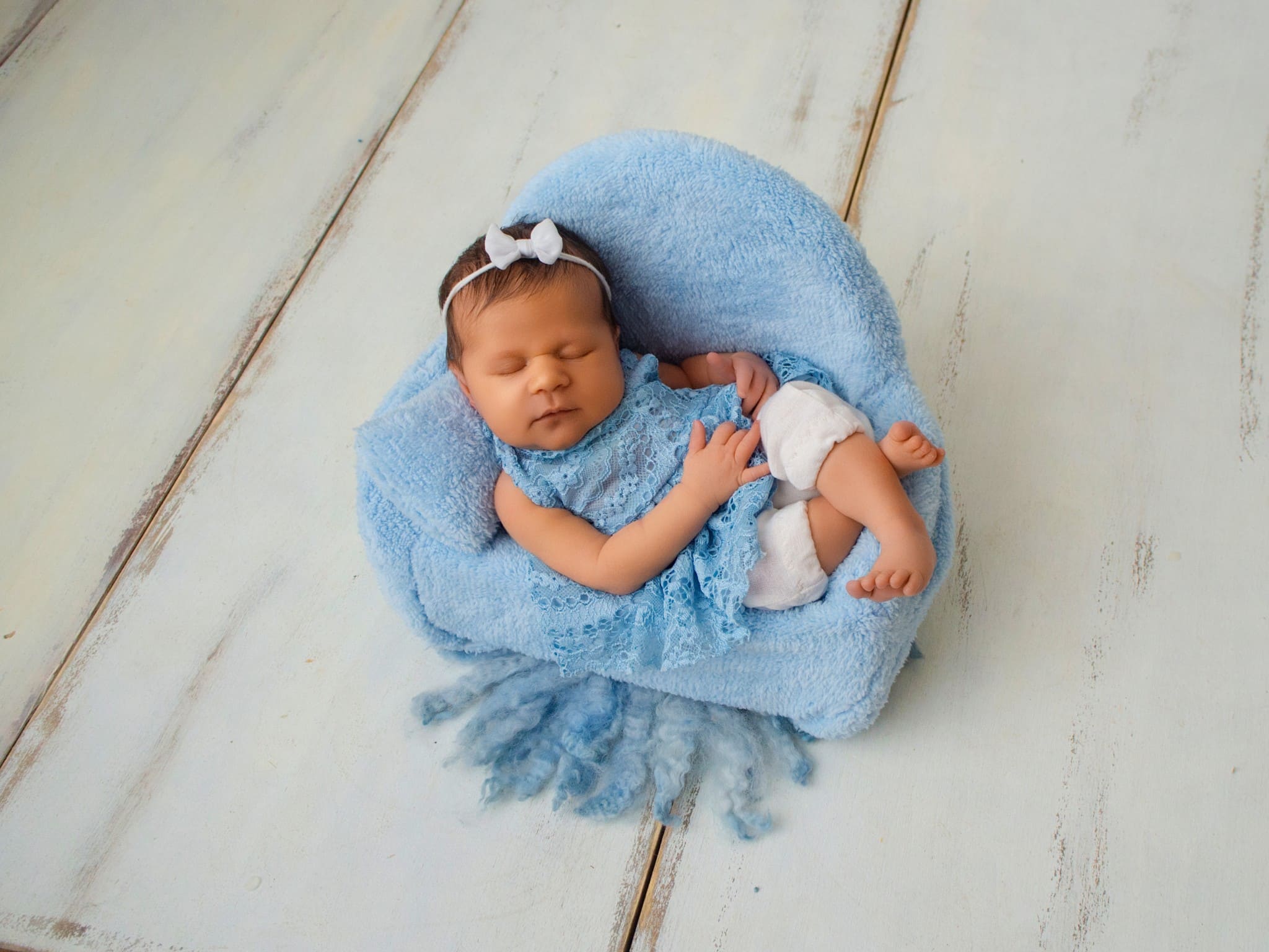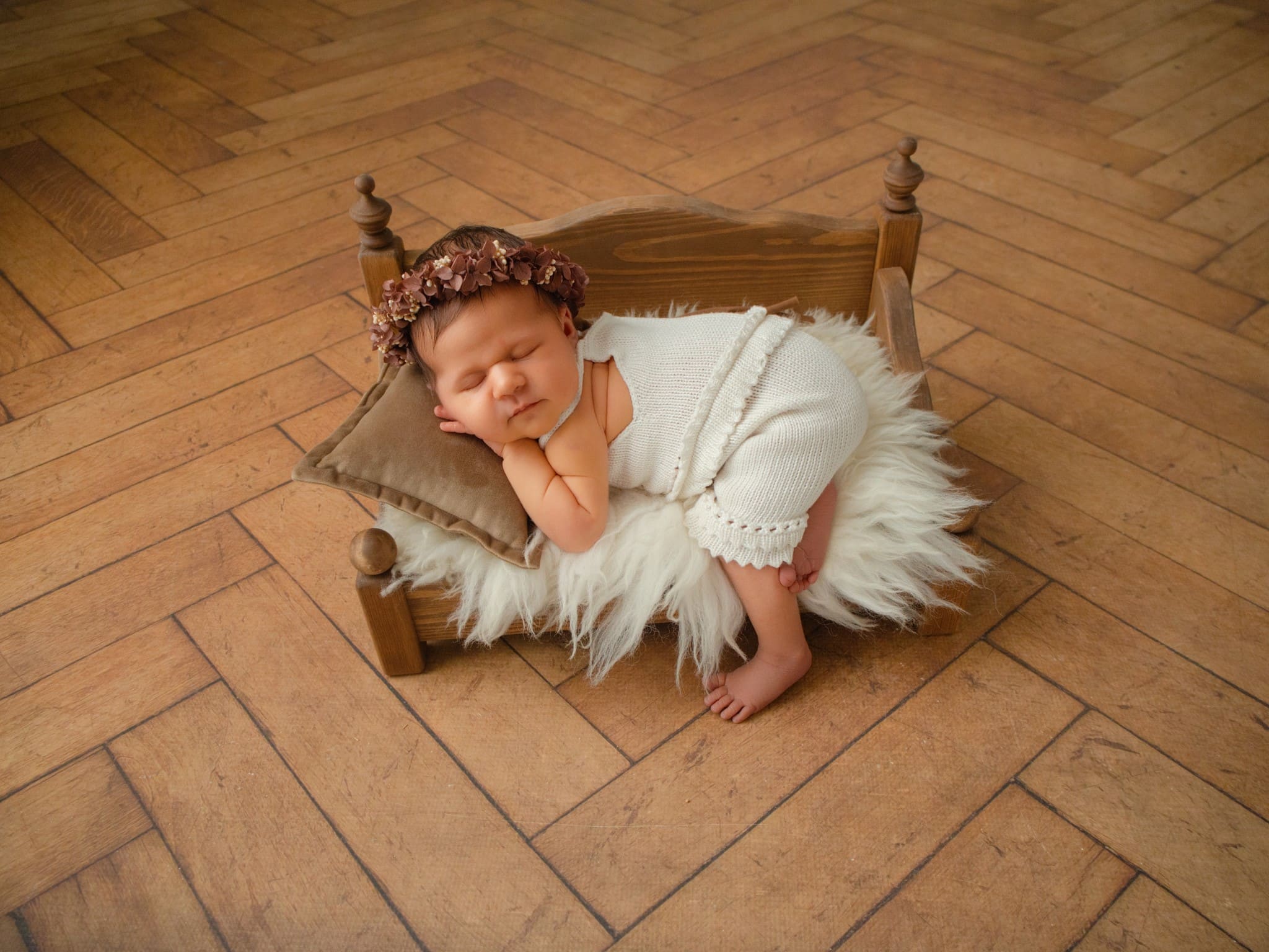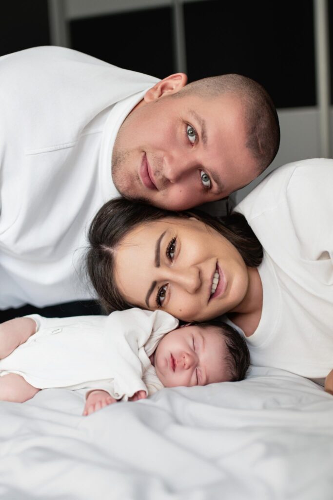 Przy sesjach noworodkowych dbam o bezpieczeństwo i wygodę maluszka, a także komfort rodziców.